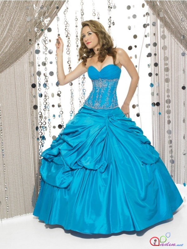 Daha bir mavi rəngdə gəlinlik. İncəliyi göz oxşayır.