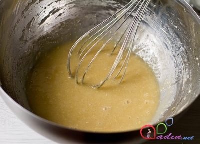 Yağı bir qaba əlavə edirik və yumşalana qədər gözləyirik. Əgər tələsik olsa, blenderdə yumşalda bilərsiniz və onu yan tərəfdə gözlədirik. Başqa bir qabda şəkər tozunu və hər iki unu qarışdırırıq. Yumurtanın ağını da kənarda vanil əlavə edərək köpüklənənə qədər qarışdırıb qarışımın üzərinə əlavə edib bir daha qarışdırırıq.